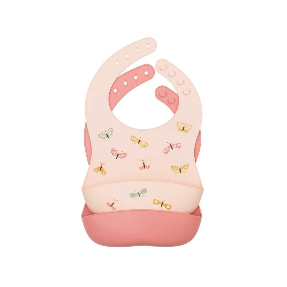 ALLC Little Lovely Company - Set de 2 bavoirs en silicone papillons rose/rose