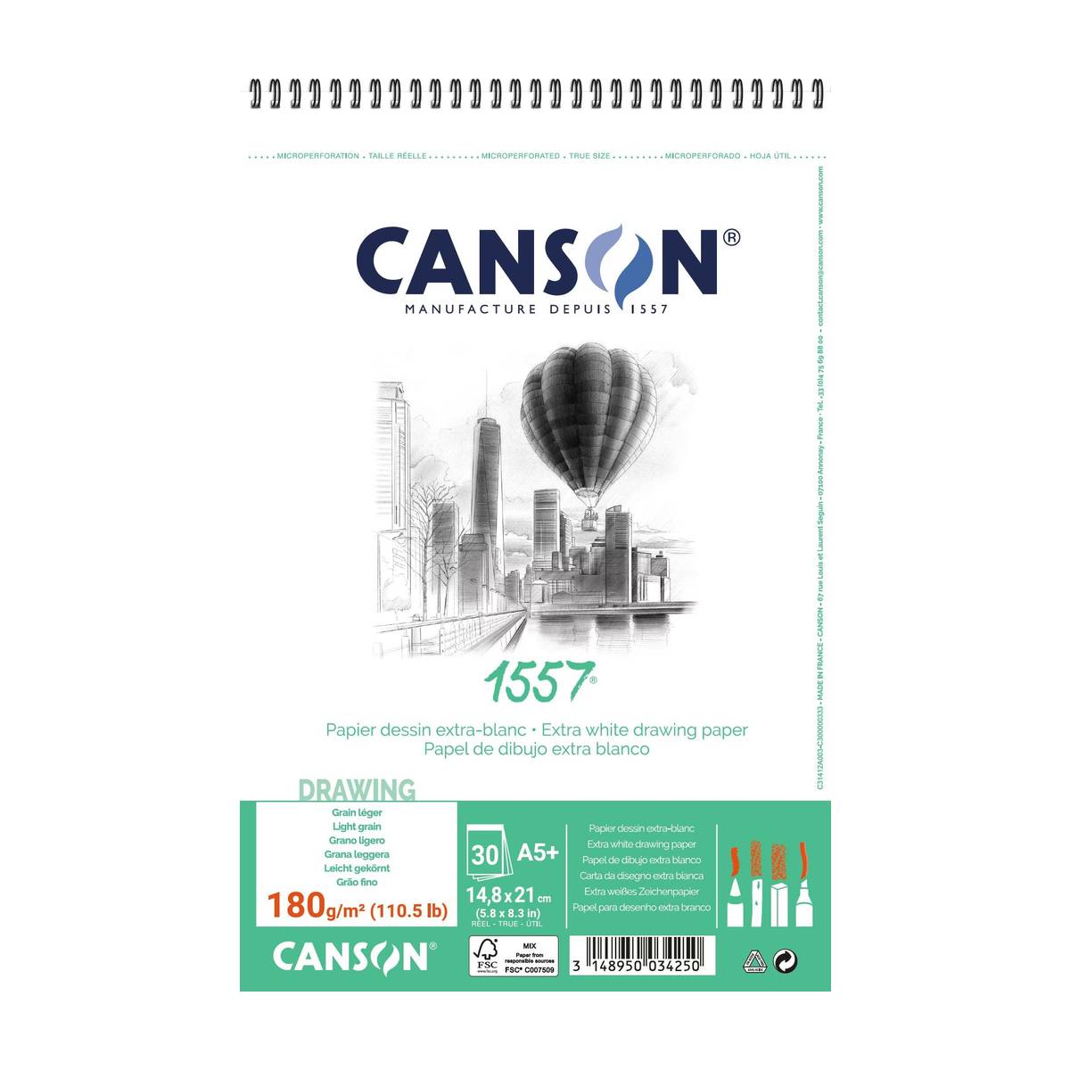 Ce papier est idéal pour des dessins techniques précis avec du graphite et des crayons de couleur. 1557® Papier à dessin retient les pigments et permet des dégradés et transitions fines et illimitées.
