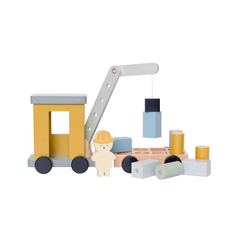 Un grue classique entièrement en bois, conçu pour les enfants un peu plus petits. Le grue repose solidement sur 8 roues, permettant de tirer de lourds blocs et de se déplacer en douceur.