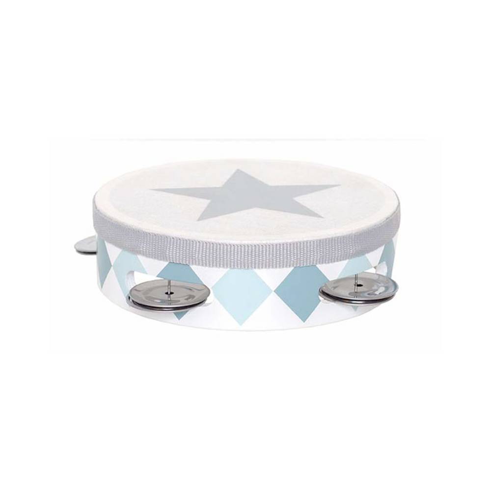 L'instrument est joliment décoré avec une grande étoile au centre et dans différentes nuances de bleu.