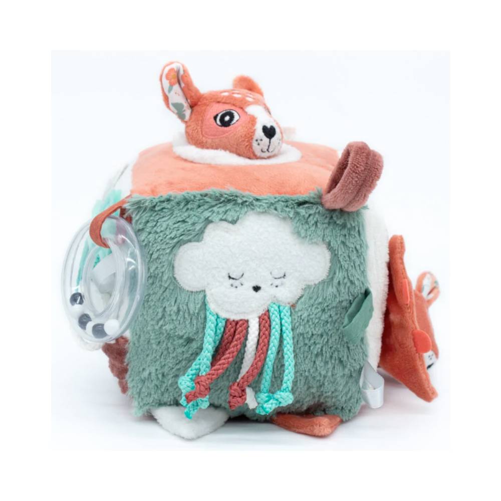 Un cube de jeu qui peut tout faire, tout en étant très joli, câlin et offrant de nombreuses découvertes.